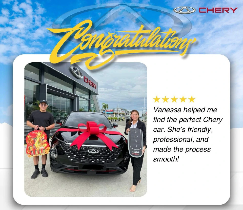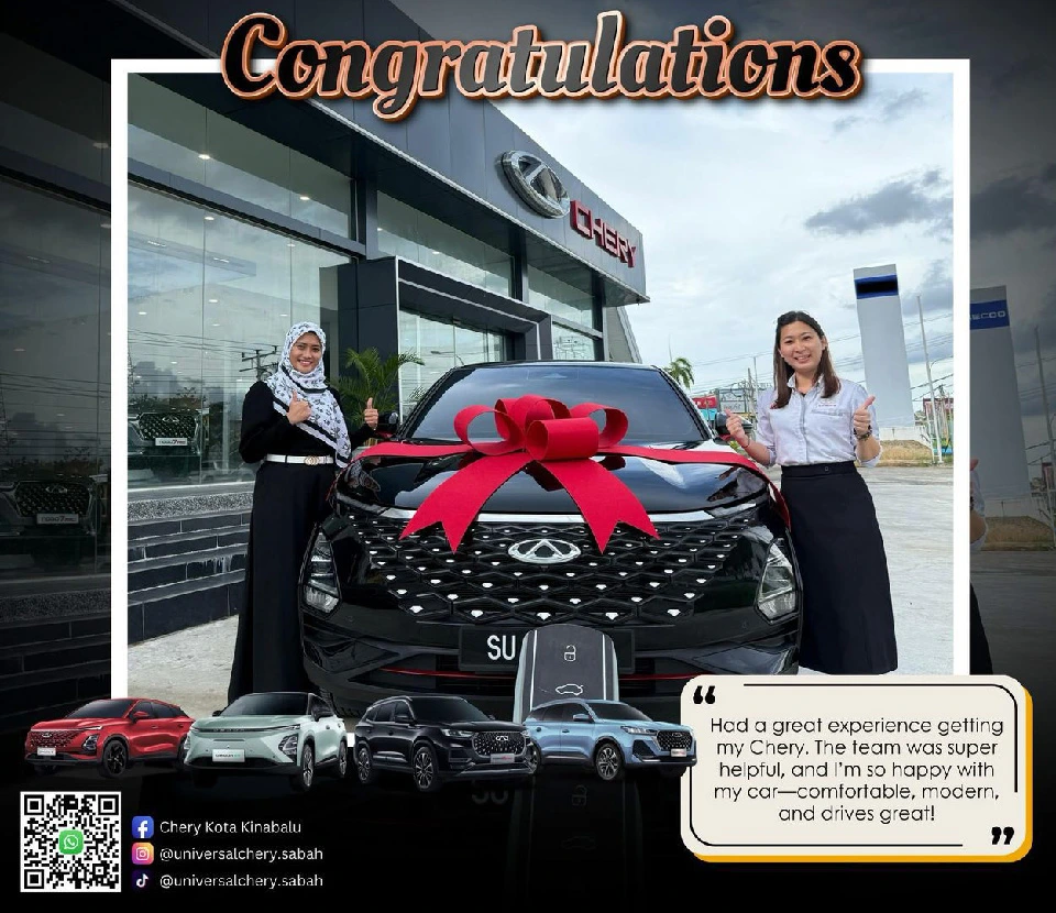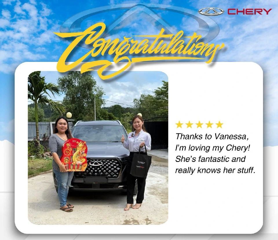 Chery Sales Advisor Many People's Choice, Vanessa Lau a valid and registered Chery sales advisor. My services cover all areas in Kota Kinabalu & all over Malaysia. I offer various models and latest promotions from Chery. I have over 5 years of experience as a Chery sales advisor and I have helped many customers get their dream car. I also offer free advice and enlightenment for clients.